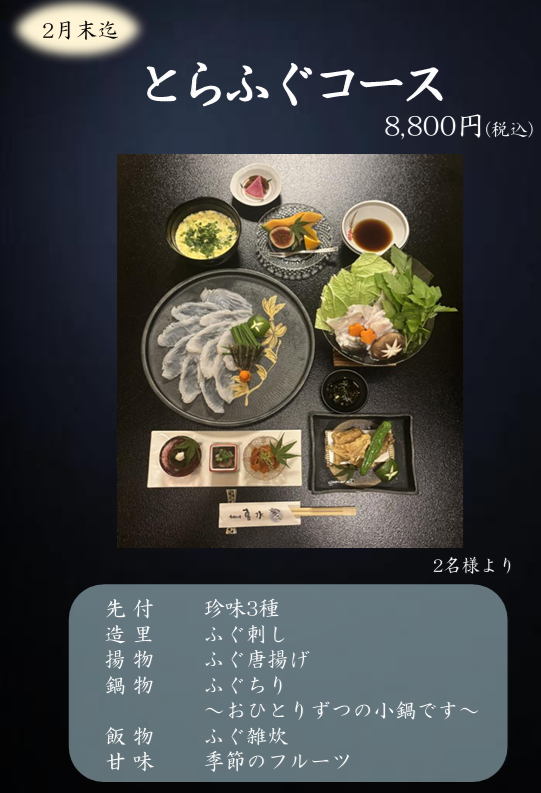 ぜひ今期のふぐ料理もお楽しみ下さい。