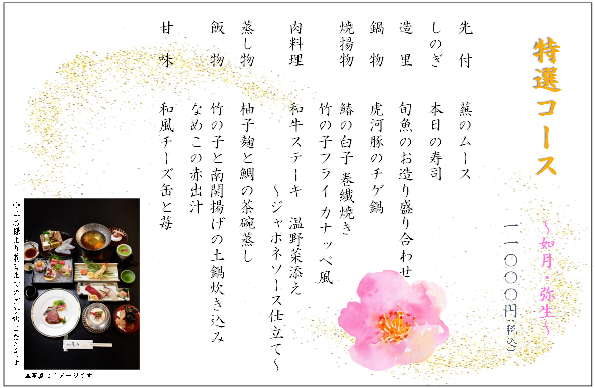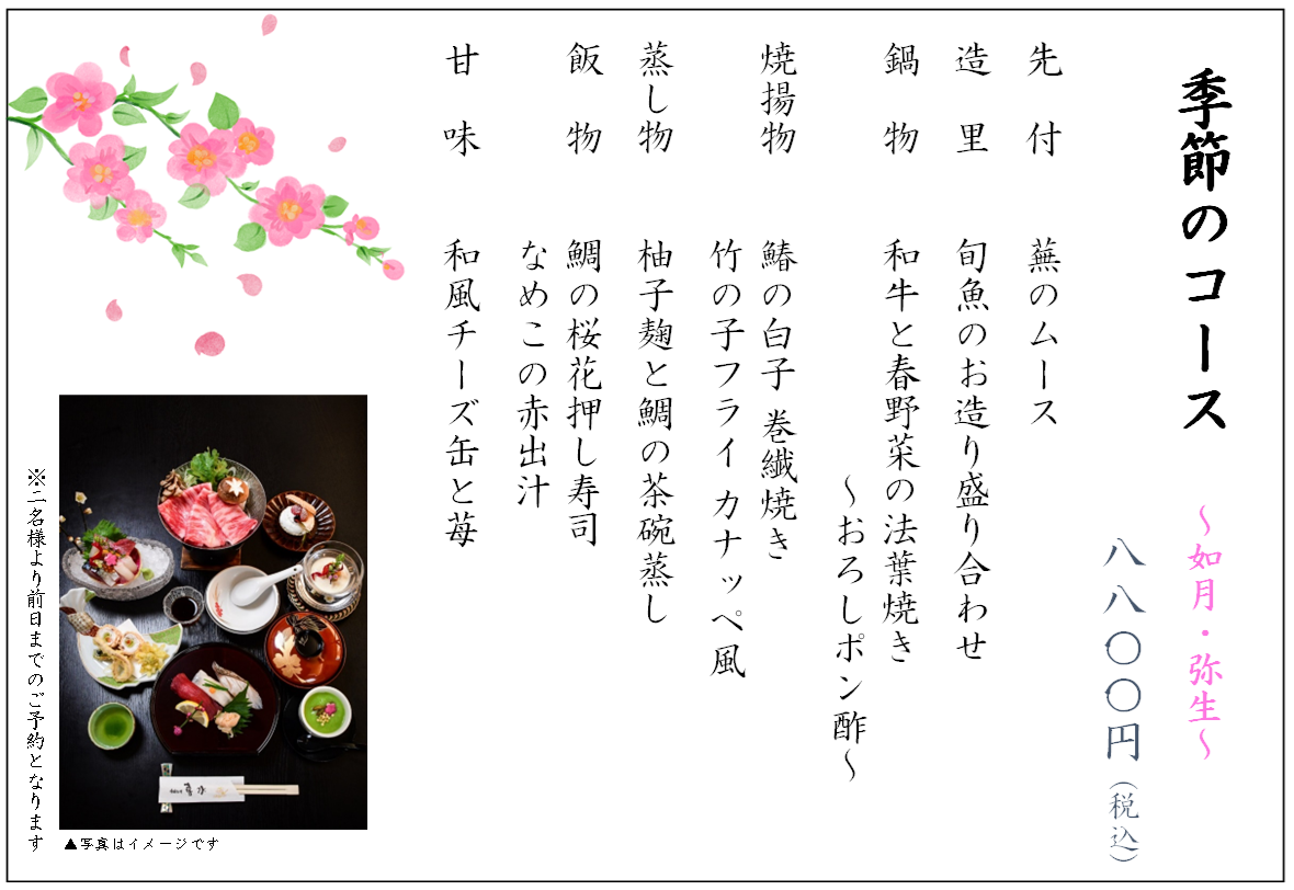 4名様より前日までの御予約、グループ全員での御注文となります。