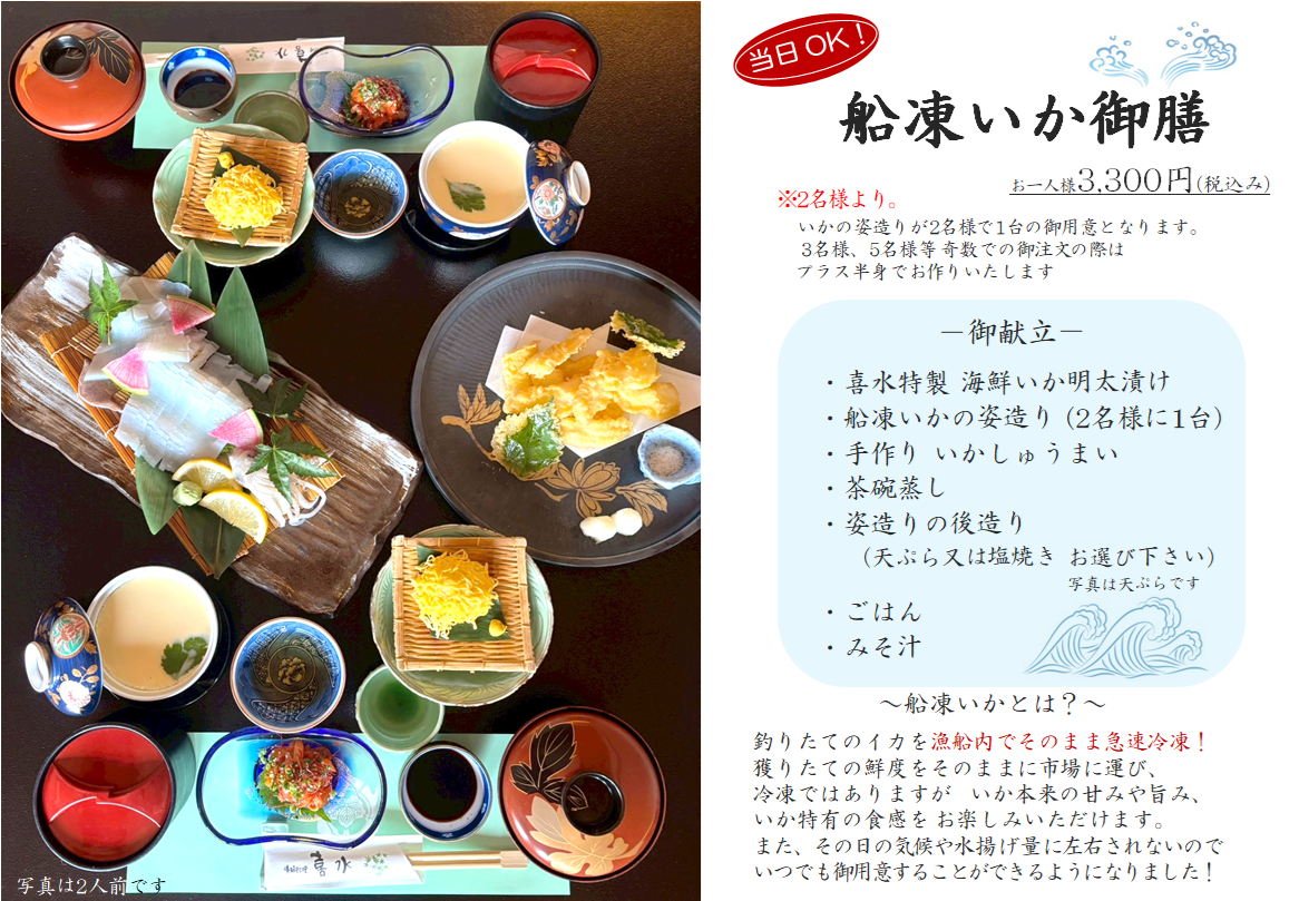 お料理のスムーズな御提供のため、御注文のメニューがお決まりの方は、